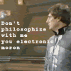 Description: Kerr Avon quote: Don't philosophise at me you electronic moron; answer the question